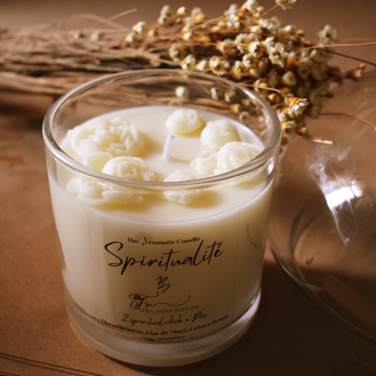 Em parceria com a renomada espiritualista Fernanda Rusvéer, apresentamos a Vela Spiritualité, uma ode aromática à conexão espiritual e à beleza atemporal das flores. Esta vela é uma celebração da harmonia entre o mundo material e o transcendental, convidando você a mergulhar em um universo de fragrâncias florais que elevam a alma.